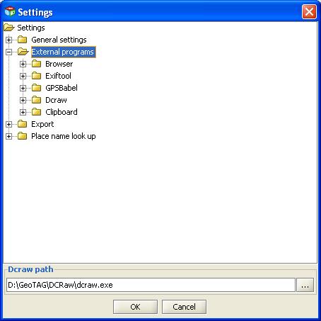 La prima volta che si lancia GeoTag è necessario impostare i path dei programmi esterni dal menu “settings…“.